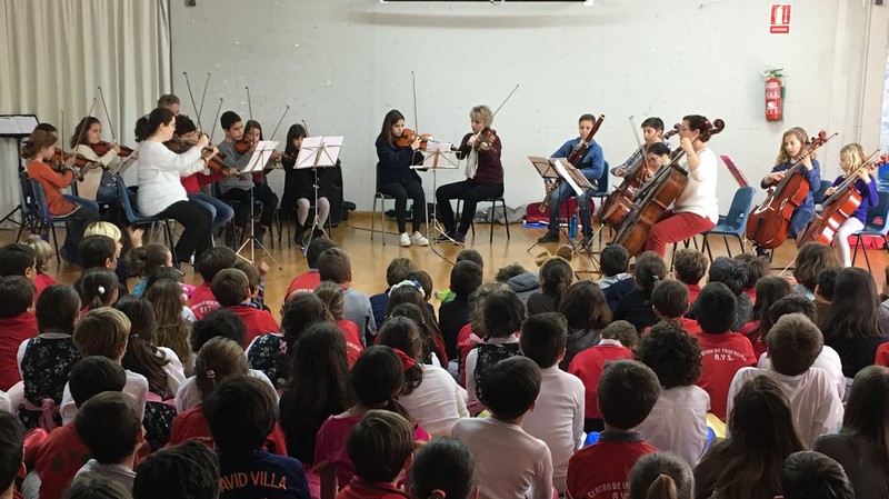 Nuestros alumnos han asistido hoy a un concierto muy especial, a cargo de una orquesta formada por alumnos y profesores de la Academia Chaplin.